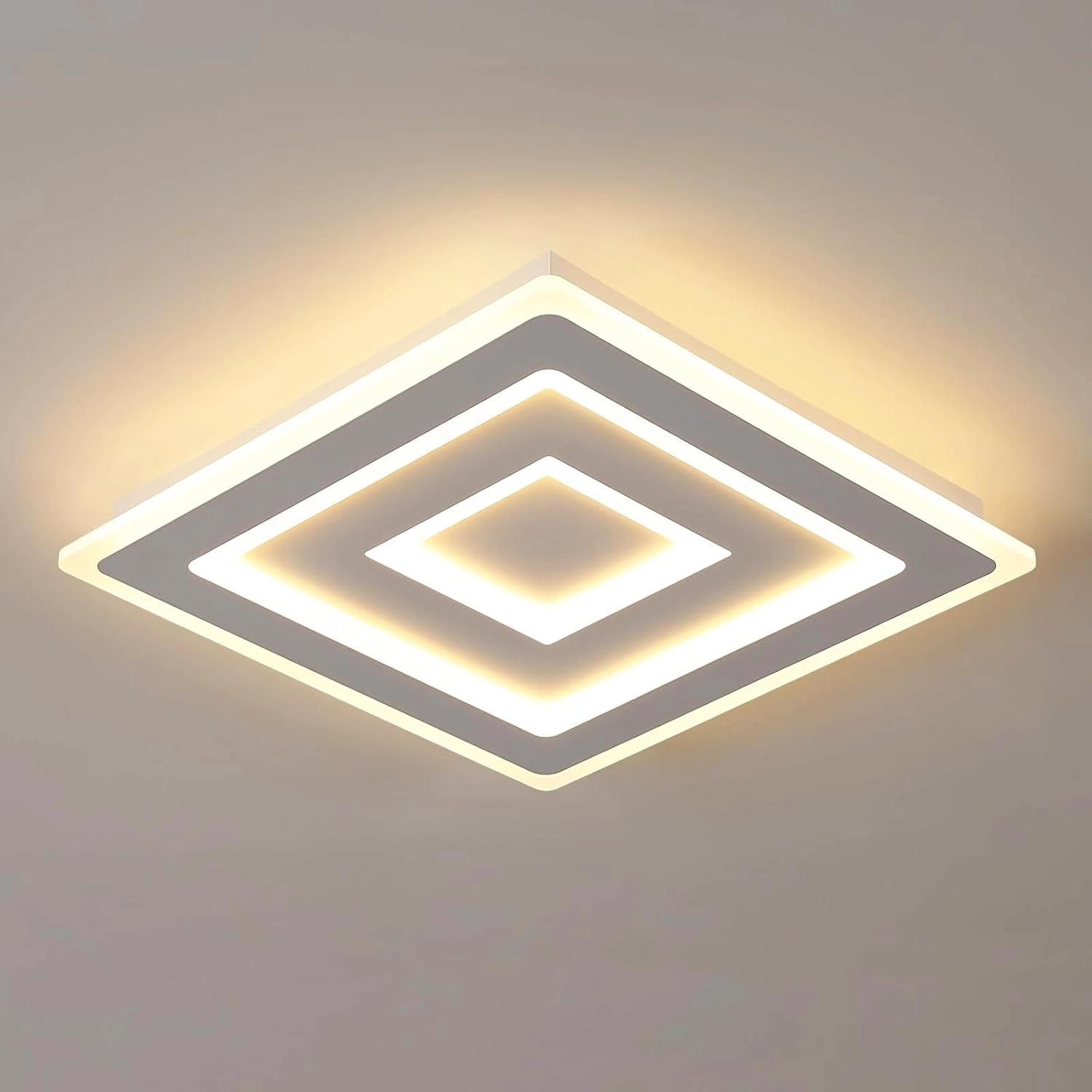 Diese moderne LED Deckenleuchte in quadratischem Design kombiniert ?sthetik mit Funktionalit?t. Sie bietet eine hohe Helligkeit mit eingebauten LED Lampenperlen und spart mehr Energie als herk?mmliche Gl¨¹hbirnen. Das gleichm??ige, weiche, blendfreie Licht zusammen mit hochwertigen Materialien wie Metall und Acryl, die korrosions- und rostbest?ndig sind, macht diese Lampe ideal f¨¹r vielf?ltige Wohnbereiche